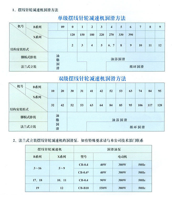 说明:*防爆电动机直联型摆线针轮减速机采用带防爆电动机的润滑油泵。
